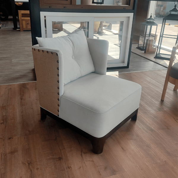 Sillón tapizado en atuel con tachas.